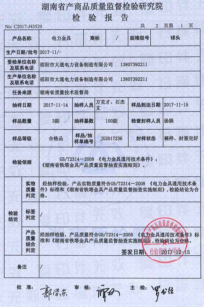 球頭檢驗(yàn)報(bào)告
